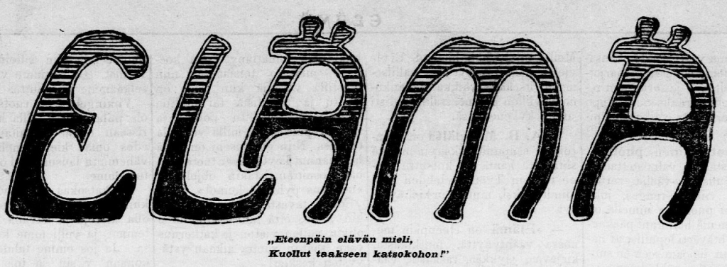 Elämäläiset muodostivat suurlakon ja vuoden 1909 välisenä aikana Helsingistä käsin myös muualle Suomeen lonkeroitaan kurottaneen toimijaverkoston, joka pääkaupungissa ammensi jäseniä erityisesti Sörnäisten työväenyhdistyksen ympärille vuosisadan ensivuosina muodostuneista, esoteerisista aatteista kiinnostuneiden henkilöiden piireistä. Ei ole ihme, että Uudesta Ajasta kiinnostunut Heinokin löysi tiensä elämäläisten joukkoon. Hän jopa nousi varsin vaikutusvaltaiseksi hahmoksi tässä yhteisössä: hän oli nimittäin Elämän isännöitsijä, toimittaja ja kuvittaja sekä reformipuolueen sihteeri. Käsittääkseni (muistan lukeneeni tämän jostain päin kyseistä lehteä, mutta en tähän hätään löydä viitettä) hän oli vastuussa myös Elämän jokaisen numeron etusivulla komeilleesta logosta: